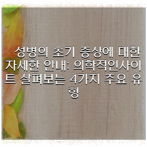 성병은 성관계를 통해 전염되는 질병으로, 임질, 매독, 첨예 콘딜로마, 에이즈 등 다양한 유형이 존재해용. 이러한 질병은 성 건강에 심각한 영향을 미칠 수 있으므로, 조기 발견 및 치료가 매우 중요해용. 성병의 초기 증상에 대한 자세한 안내: 의학적인사이트 살펴보는 4가지 주요 유형 관련내용 확인 해 보시겠습니다.