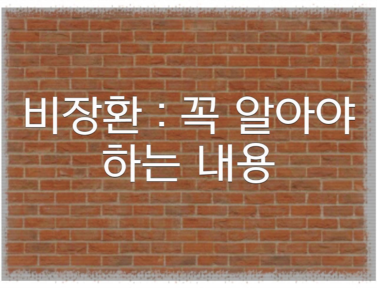 정리해드린 내용은 비장환 : 꼭 알아야하는 내용 이였습니다. 상기 글이 찾으셨던분께 좋은 내용이 되셨길 바랍니다.