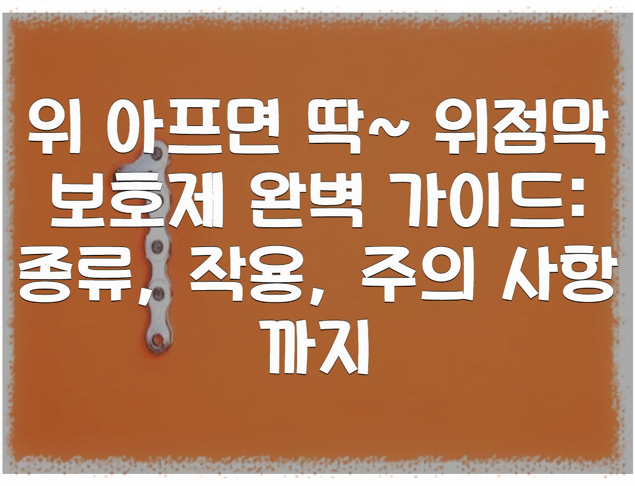 "위가 아파서 밥도 제대로 먹을 수 없고, 속 쓰림도 심해서 잠도 못 자는다구요? " 자~ 그럼, 위 아프면 딱~ 위점막 보호제 완벽 가이드: 종류, 작용, 주의 사항까지 관련 제대로 알아보실께요.